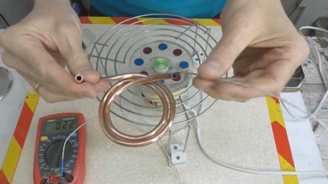 Comme vous pouvez le deviner, le rôle de l'élément chauffant est ici joué par des brosses métalliques situées dans le champ magnétique alternatif de la bobine. Si vous faites fonctionner la table de cuisson au maximum, tout en faisant passer simultanément de l'eau courante dans une chaudière impromptue, il sera alors possible de la chauffer de 15 à 20 ° C, comme l'ont montré les tests de l'appareil.