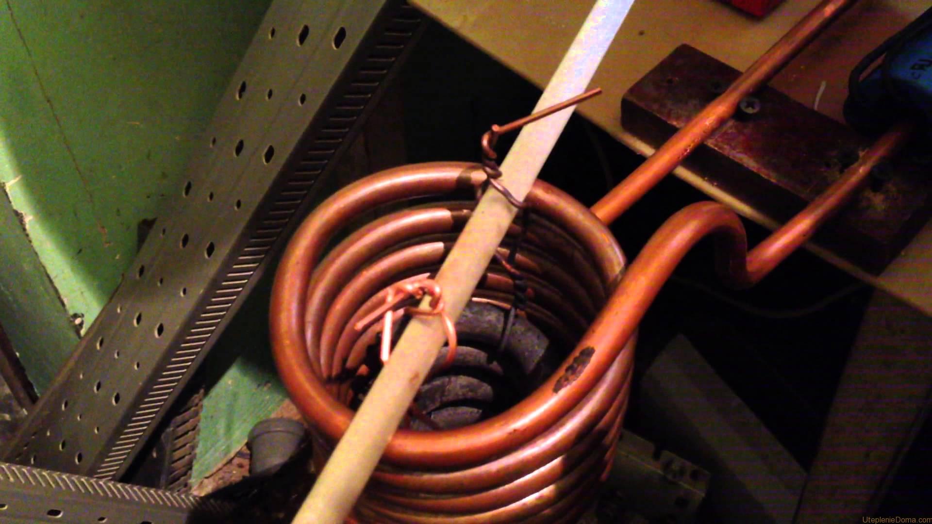 1. Pour fabriquer une bobine qui émettra un champ magnétique alternatif nécessaire au chauffage, il faut préparer un morceau de tube de cuivre d'un diamètre de 8 mm et d'une longueur de 800 mm.