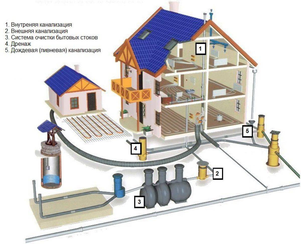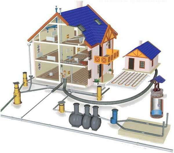 Souvent, les propriétaires de bâtiments privés doivent faire face à l'absence d'un réseau d'assainissement centralisé. Dans ce cas, un système autonome de collecte et de filtrage des eaux usées (fosse septique) est aménagé. Cependant, le principe de connexion "réseau interne externe" reste le même.