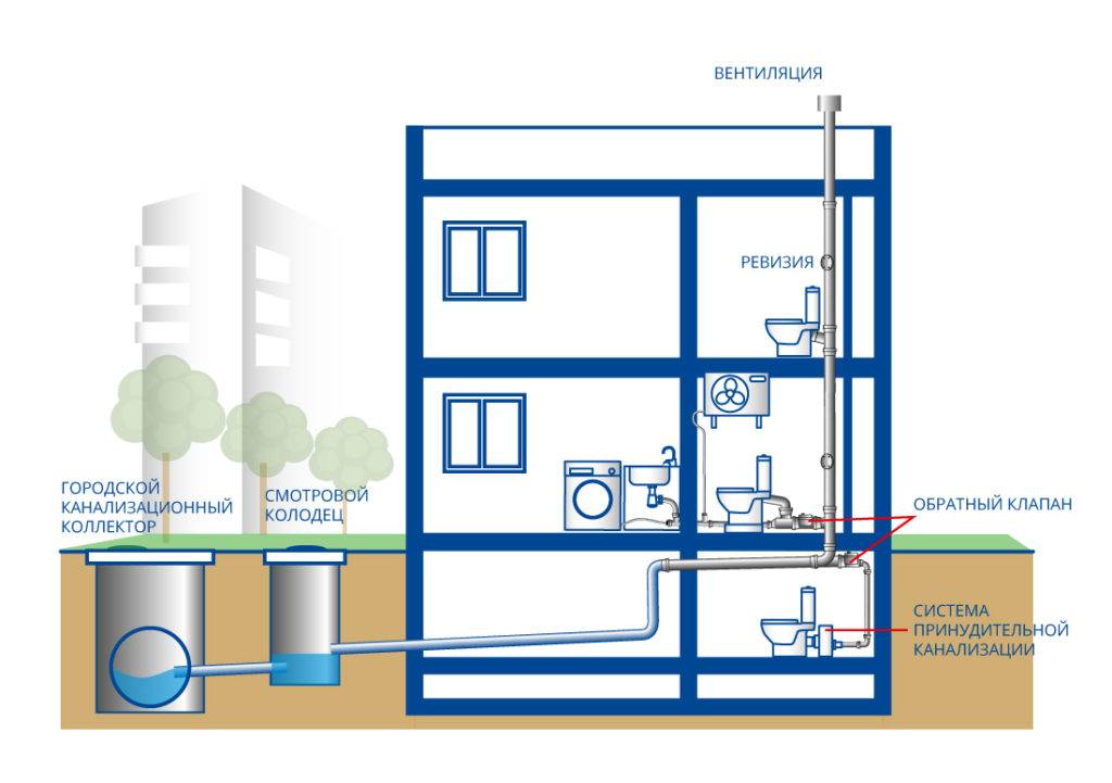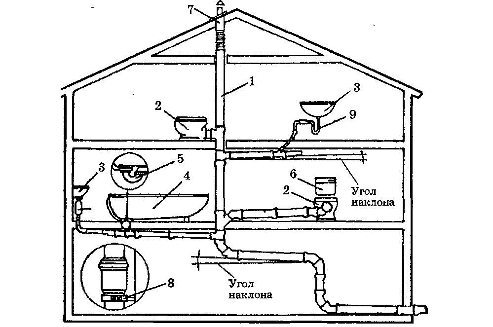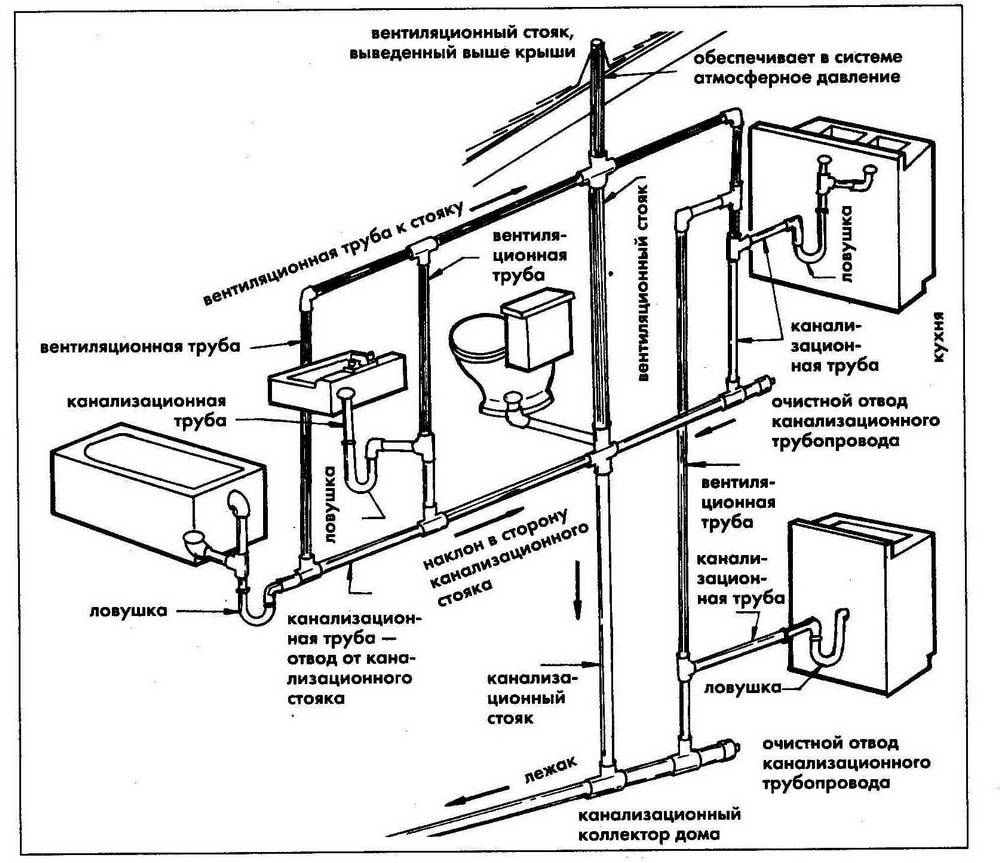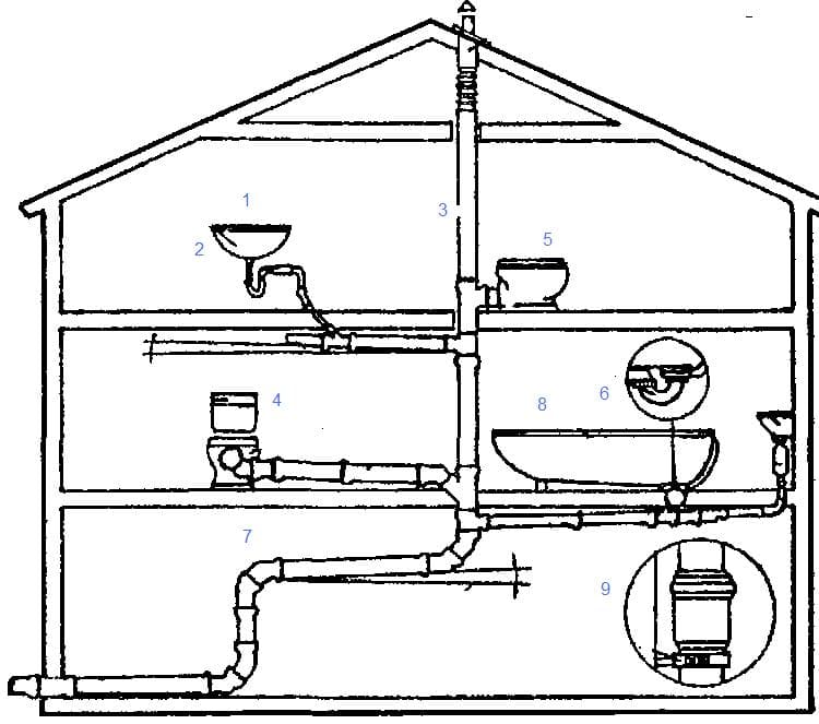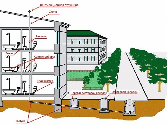 Dans le même temps, il est nécessaire de détourner les eaux usées de chacun des "consommateurs", ce qui se fait avec leur raccordement ultérieur dans un seul tuyau d'égout externe.
