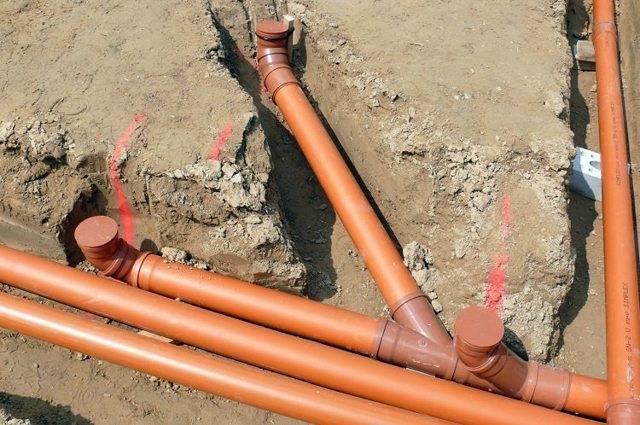 Dans la pose de conduites d'égout externes, on utilise désormais principalement des tuyaux en polymère, qui sont attirés par leur légèreté, leurs excellentes performances et leur prix abordable. Lors de la pose de l'itinéraire au-dessus du niveau de gel saisonnier, des réchauffeurs sont utilisés pour protéger les lignes de la formation de bouchons de glace.