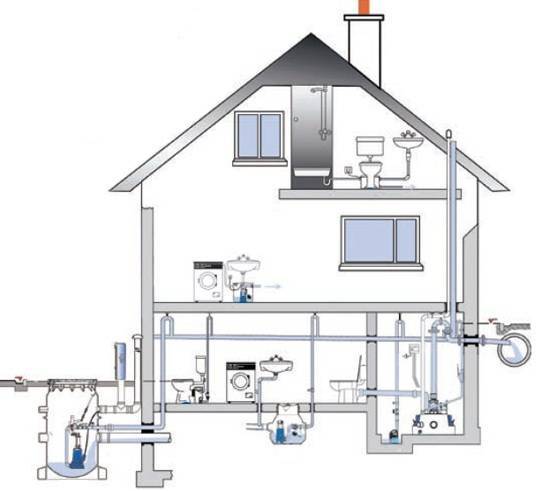 L'ensemble du système d'évacuation des eaux usées d'une maison privée est divisé en