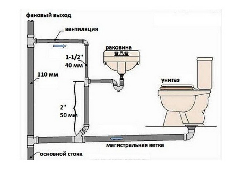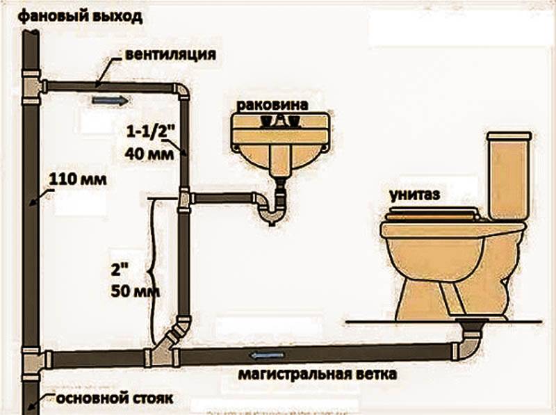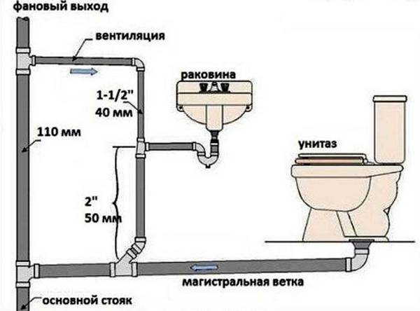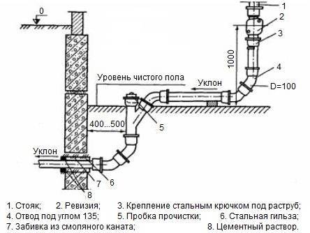 la méthode généralement acceptée d'installation de canalisations de 110 mm dans les toilettes. Tout à l'égout dans la cuisine ou