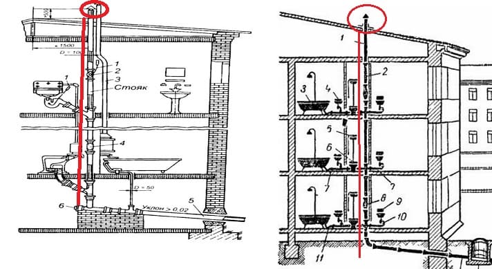 Un tuyau de ventilateur est appelé une continuation de la colonne montante. Ceci est un tuyau menant au toit