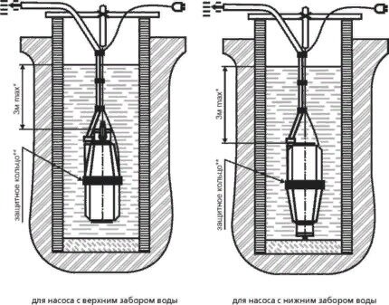 Dans le même temps, l'appareil pendant le fonctionnement également, grâce aux trous d'admission d'eau situés sur le couvercle du boîtier, ne chauffe pas et n'aspire pas le limon et divers petits débris. du fond du puits ou puits.