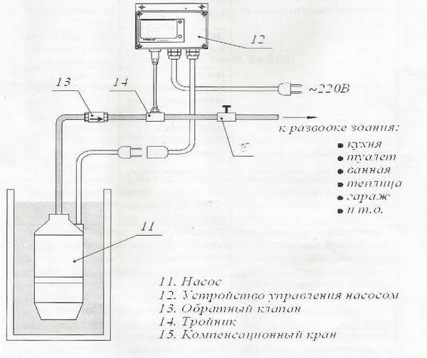 Pour la prise d'eau à partir de puits dont la distance entre la surface de l'eau et la surface est inférieure à 9 mètres, les conduites d'eau de surface sont largement utilisées. pompes ou stations de pompage centrifuges principe de fonctionnement avec automatisation, différant par le coût budgétaire et la facilité d'utilisation. Si le niveau statique de la source d'alimentation en eau est supérieur à 9 mètres, ou s'il descend à une plus grande profondeur lors de la prise d'eau (niveau dynamique), il est nécessaire d'utiliser une pompe électrique submersible dans le puits.