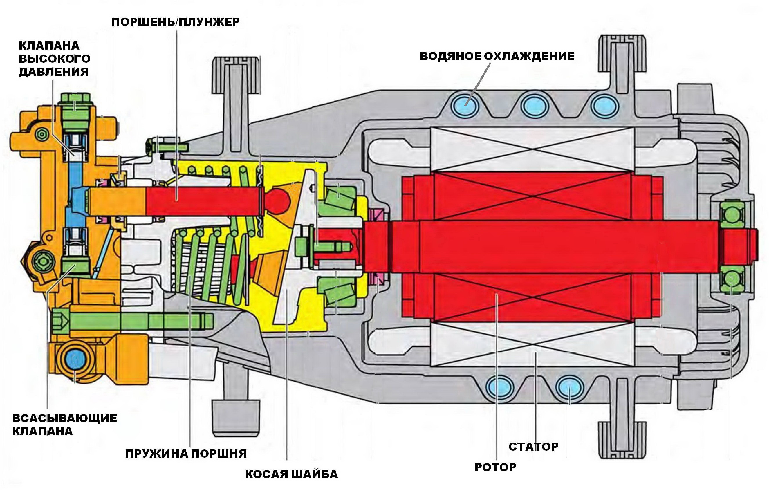 La libération d'eau dans le système d'injection de la canalisation s'accompagne d'une augmentation de pression due à son déplacement du cylindre par un piston de travail.