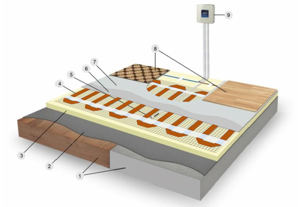 La chape vous permet d'obtenir une base solide et uniforme. Un thermostat est indispensable. L'exception est un câble autorégulateur.