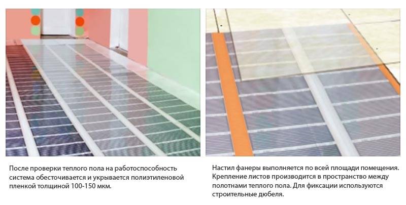 Avant de poser le linoléum doit être décomposé sur une surface plane d'un sol chaud, allumez le système et attendez que le revêtement soit nivelé