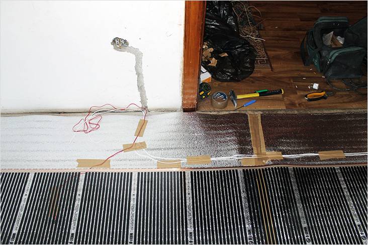 - Un substrat réfléchissant la chaleur est posé sur la surface. Sans cela, ces sols sont moins efficaces.