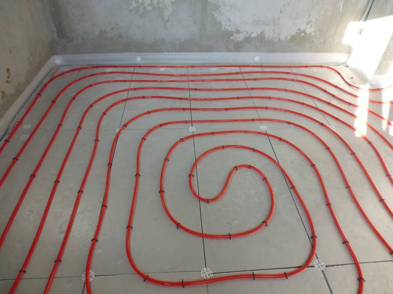 Les boucles de serpent peuvent également couvrir la pièce de manière uniforme, mais le fait que les tuyaux dans ce cas soient plus incurvés que lors de la pose d'une spirale est immédiatement frappant.