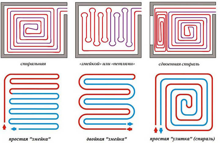 La première variété est utilisée lorsqu'il y a une pente des sols, il n'y a pas besoin d'un chauffage strictement uniforme. La seconde - nécessite beaucoup d'efforts et de précision, est utilisée lors de l'utilisation de pompes de faible puissance.