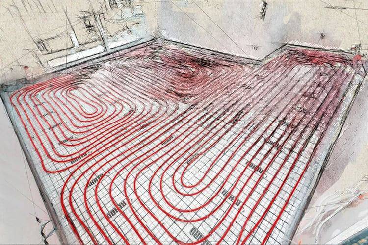 Lors du développement d'un projet de système de plancher chaud, il est recommandé de faire un dessin schématique indiquant la pose des tuyaux, les dimensions de base, les distances et les retraits et la disposition des meubles.