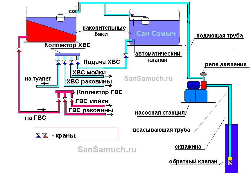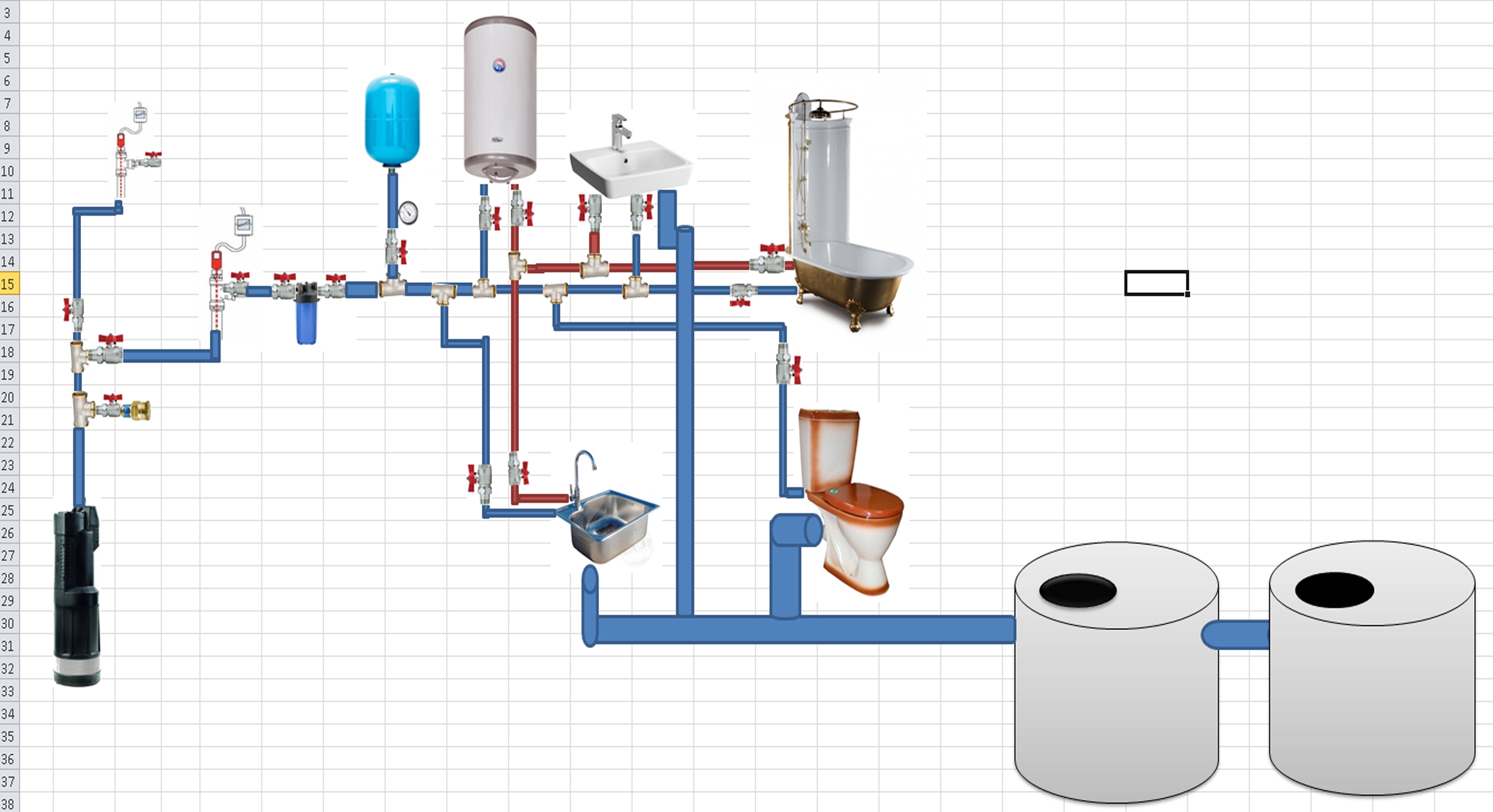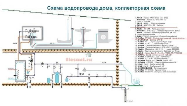 - Schéma du système d'approvisionnement en eau dans la maison