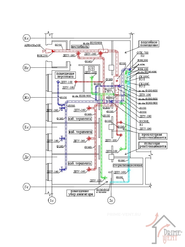 Vous pouvez voir le dessin technique de la disposition structurelle de la ventilation en dentisterie dans cette vidéo :