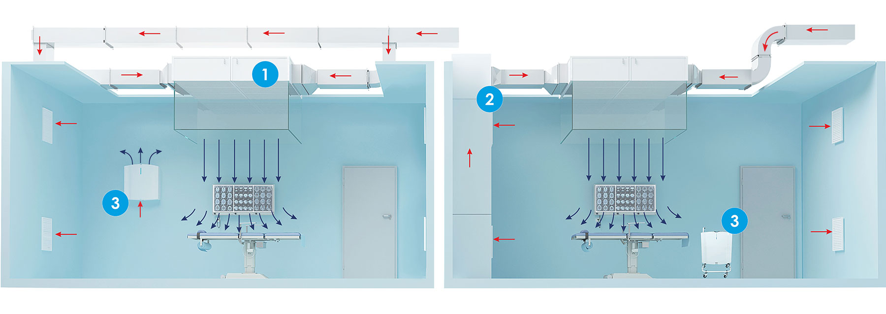 La climatisation de la salle de radiologie, des salles d'opération et des autres locaux doit être effectuée à l'aide d'équipements spécialisés qui non seulement fourniront et prélèveront de l'air, mais également le filtreront.