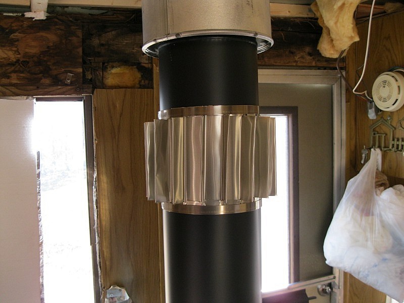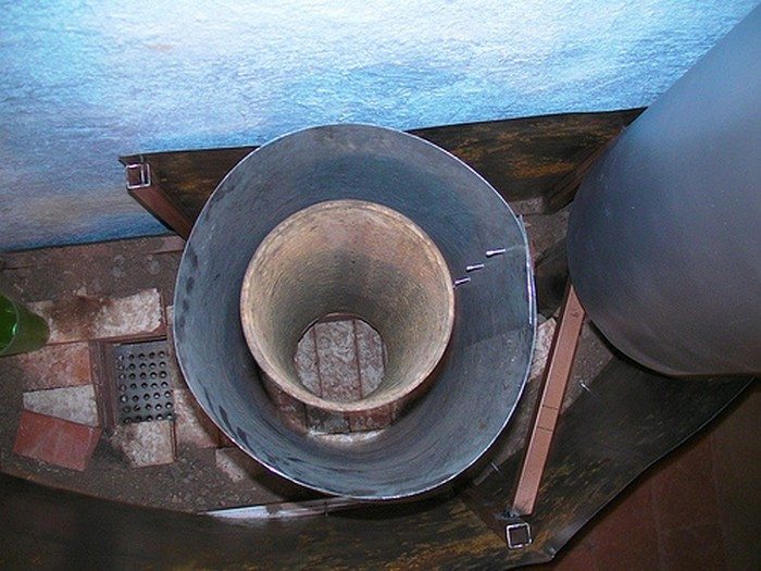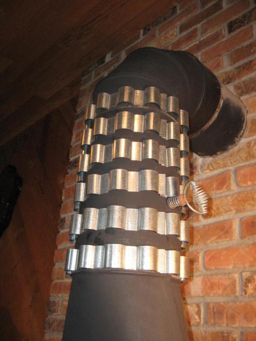 De plus, un échangeur de chaleur peut être installé sur la section de cheminée dans le grenier, ce qui fonctionnerait sur le principe d'une fournaise à cloche - c'est lorsque l'air chaud monte et lorsqu'il se refroidit, il descend lentement. Cette conception a son propre avantage énorme - une cheminée en métal ordinaire au deuxième étage chauffe généralement de sorte qu'elle ne peut pas être touchée, et un tel échangeur de chaleur réduira considérablement le risque d'incendie ou de brûlures accidentelles.