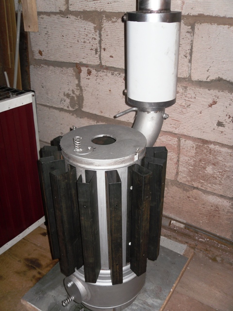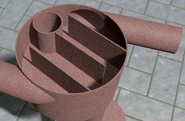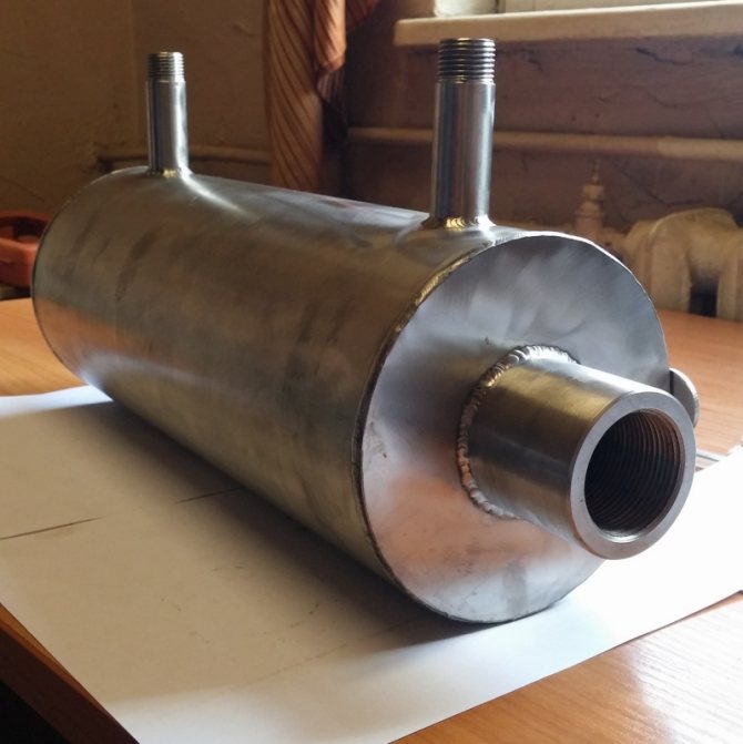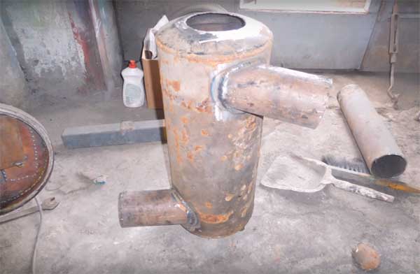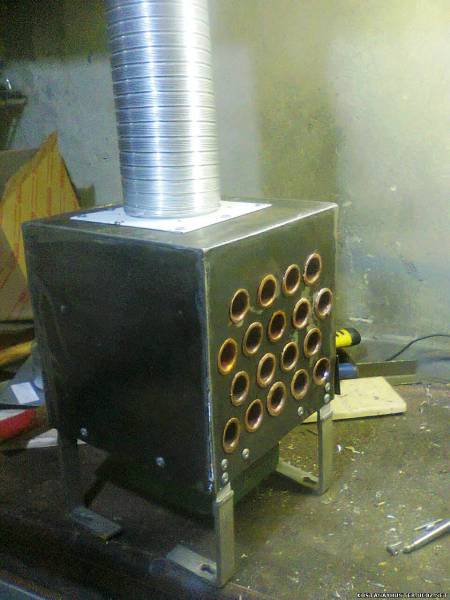 Si vous n'êtes pas satisfait de ce type d'échangeur de chaleur, vous pouvez en fabriquer un autre, par exemple en soudant des tuyaux en acier. Cela ressemble à ceci :
