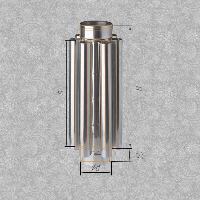 Cette conception est conçue pour prélever la chaleur d'une cheminée chauffée et la transférer au liquide de refroidissement circulant dans l'échangeur de chaleur. La conception même d'un tel appareil dépend de la forme et de la section de la cheminée, du matériau à partir duquel elle est fabriquée, de la puissance de l'appareil de chauffage et du liquide de refroidissement, qui peut être de l'air, de l'eau, de l'huile et divers liquides non gelants.