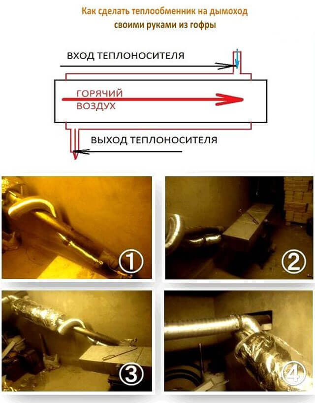 Un échangeur de chaleur est installé sur le tuyau de cheminée menant au bain public, à la maison ou à une autre pièce. Avec lui, la différence de chauffage se fera sentir immédiatement. Regardez la vidéo correspondante pour vous aider à faire vous-même le travail.