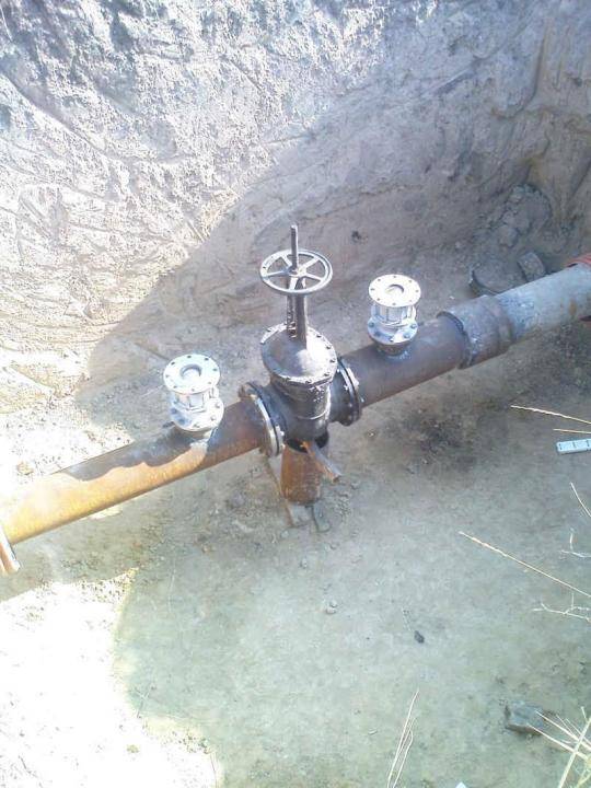 - Ensuite, un compteur d'eau est installé. Une vanne de couplage d'arrêt est montée des deux côtés. Le compteur peut être dans le puits ou dans la maison. Pour le calibrer, la vanne à bride d'arrêt est fermée et le compteur est retiré.