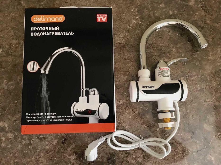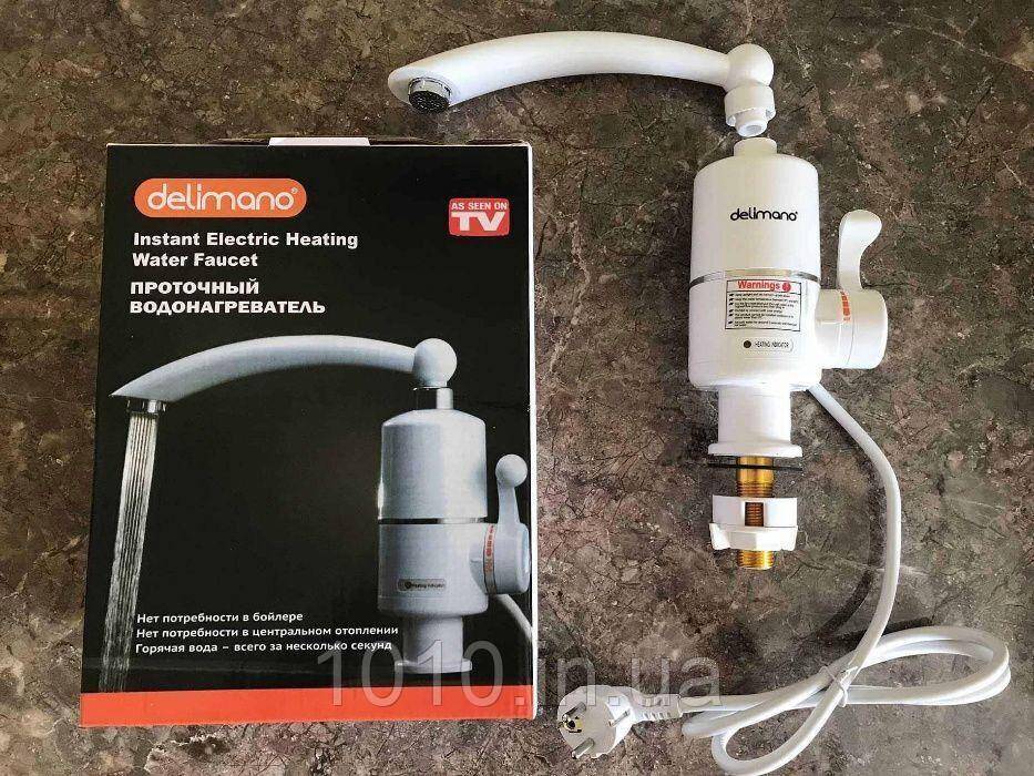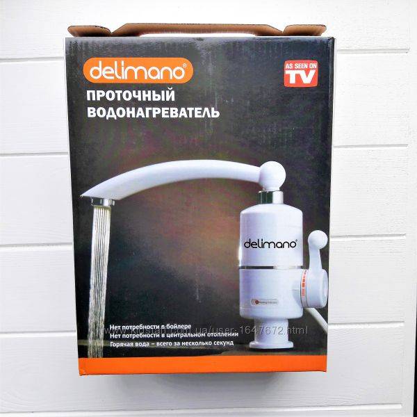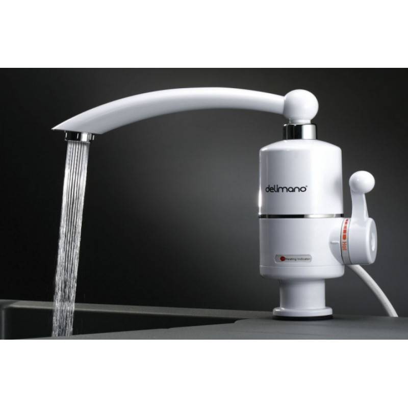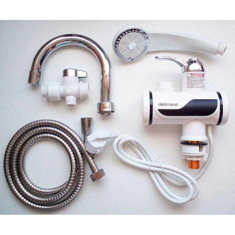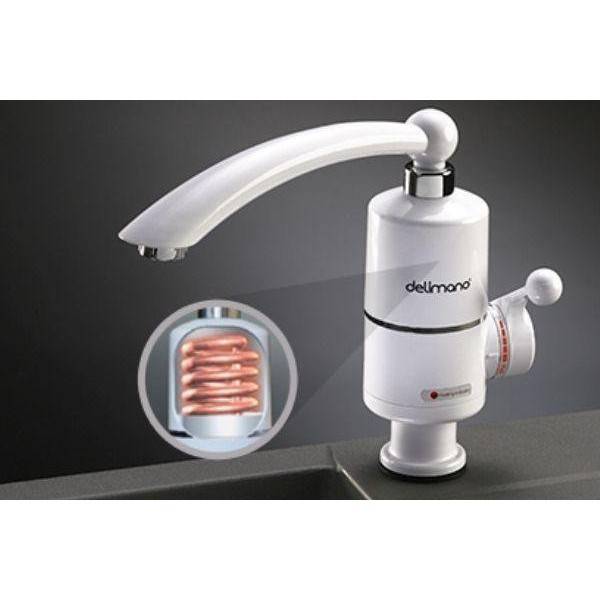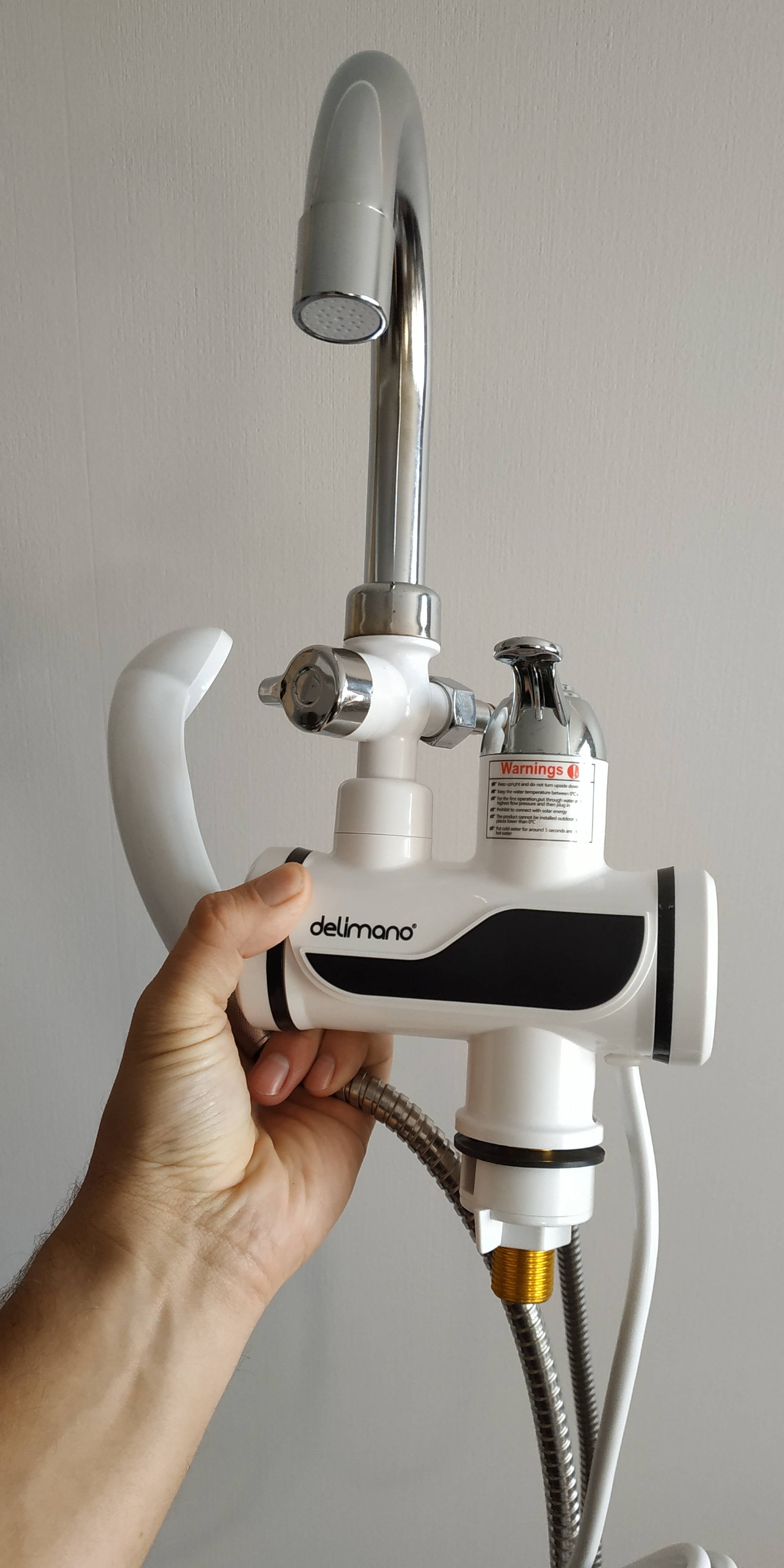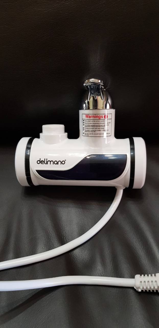 - Facile à installer et à utiliser. Le chauffe-eau instantané Delimano ne nécessite pas de câbles et de réglages supplémentaires. Il se branche simplement sur une prise et fonctionne lorsque le bouton est tourné.