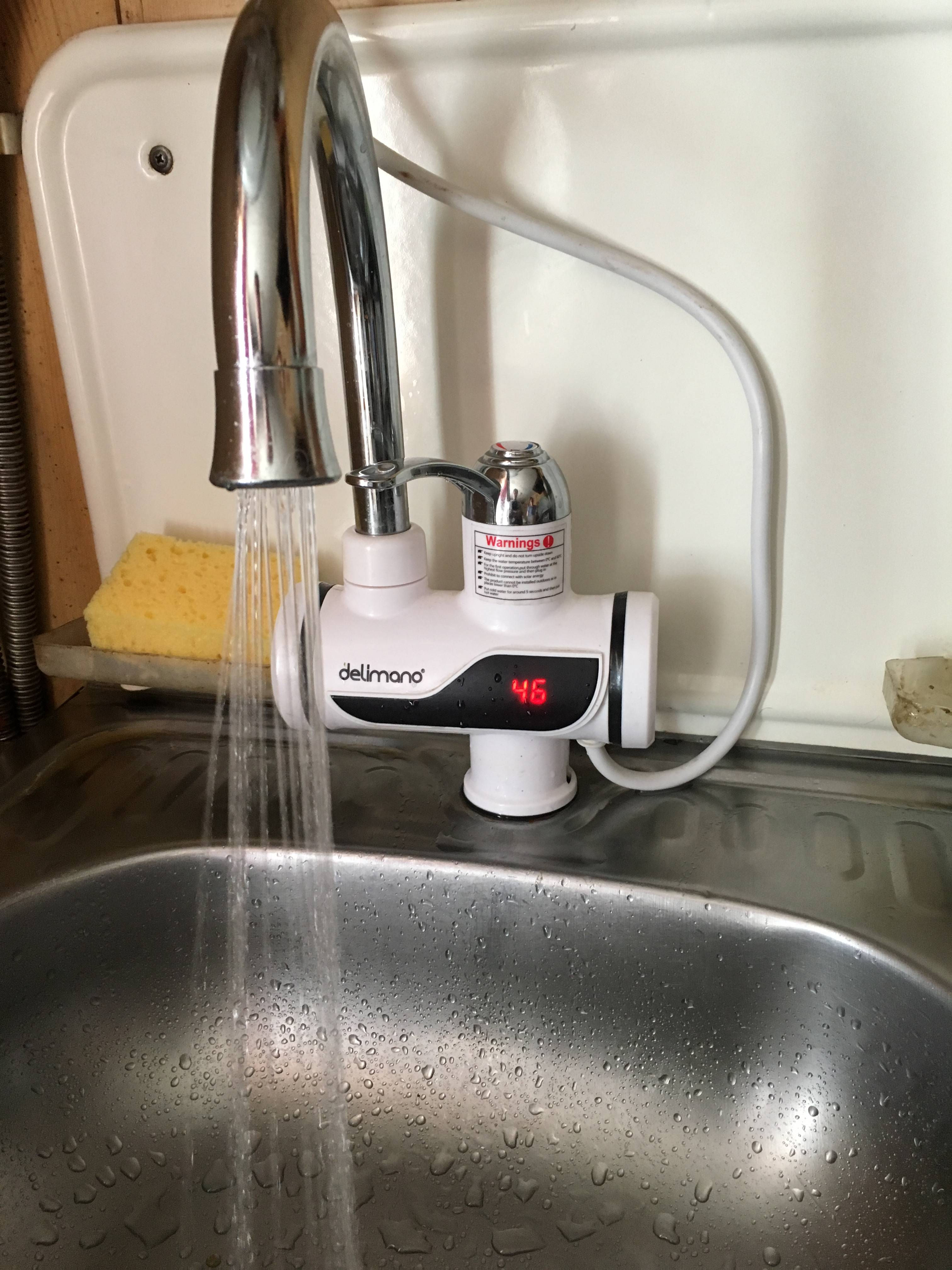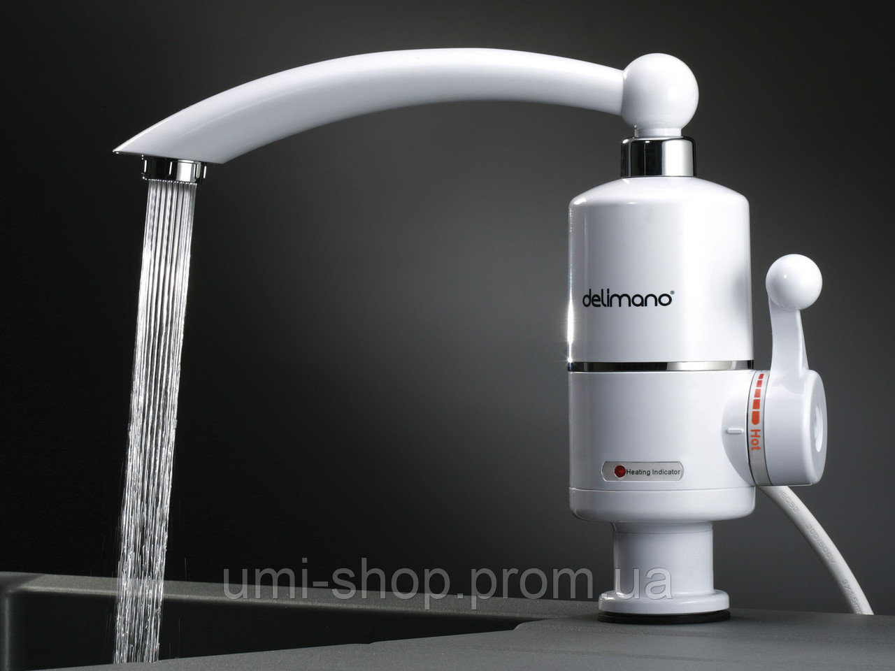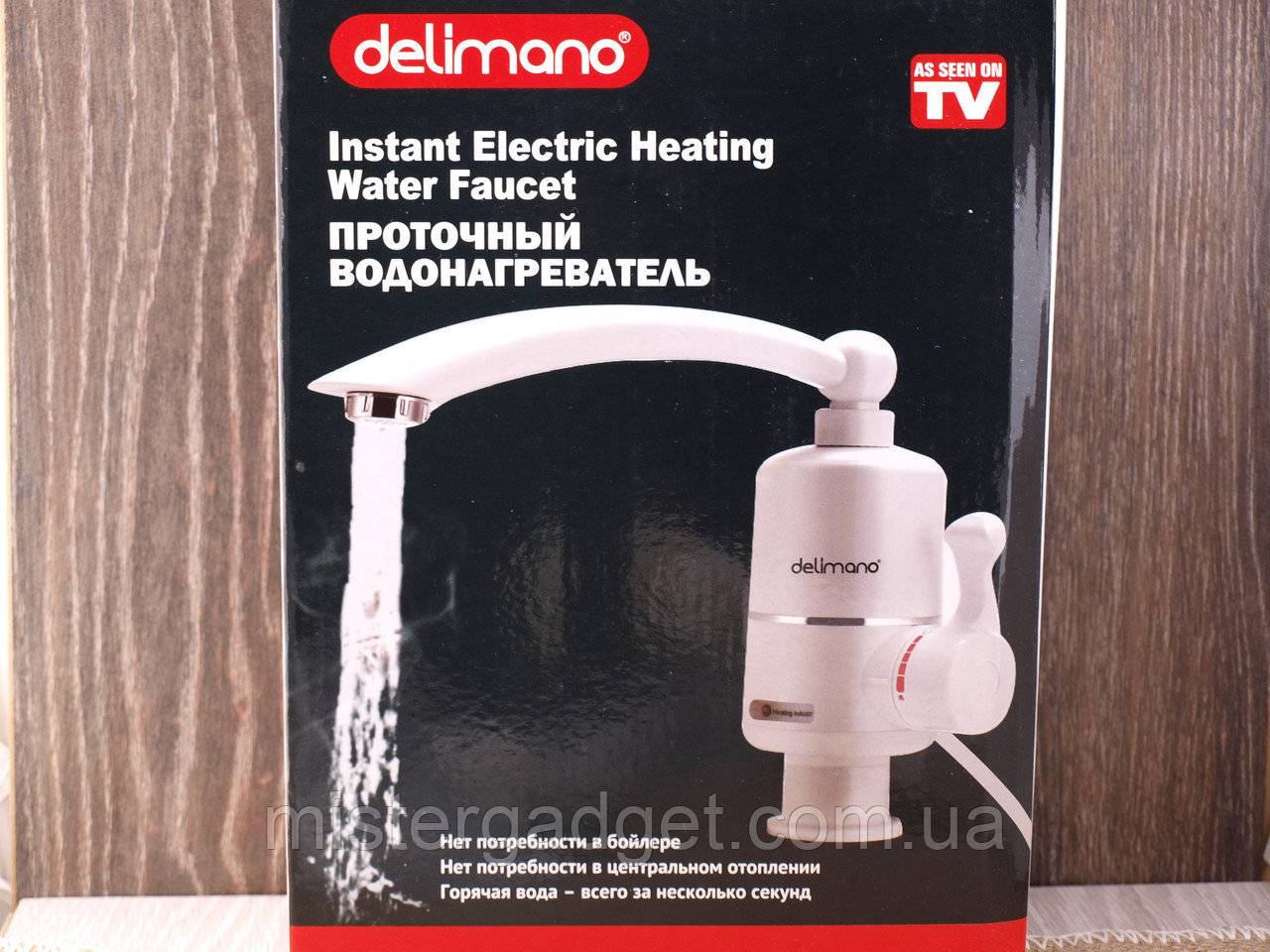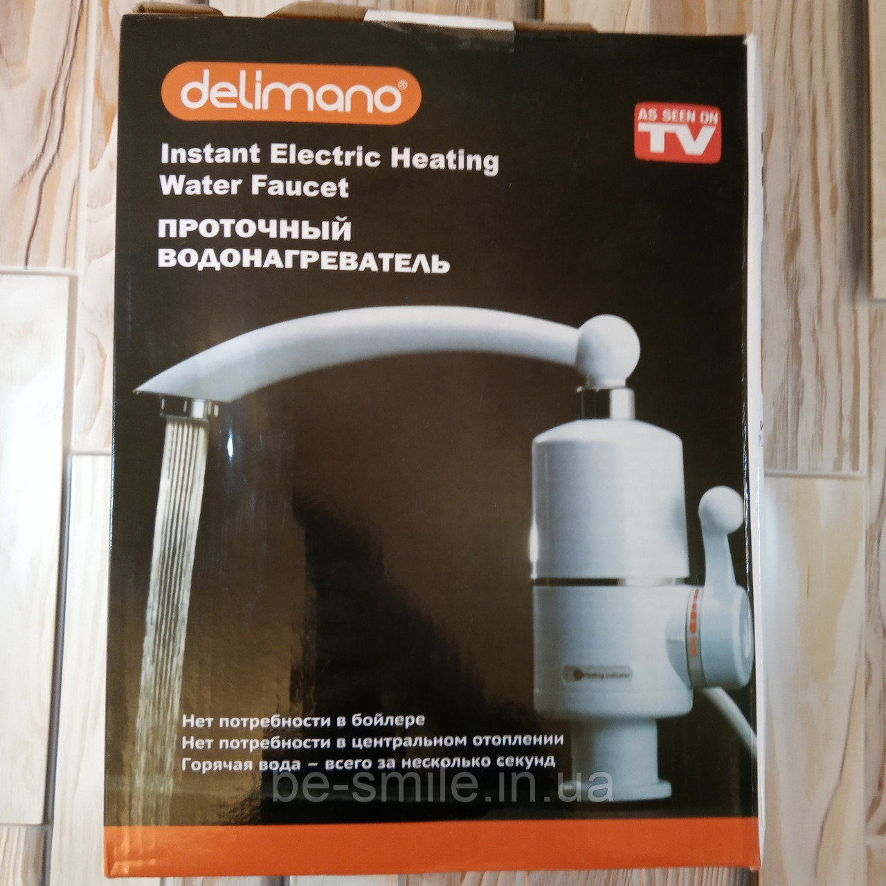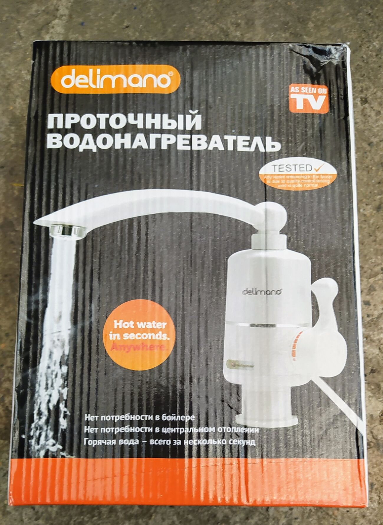 - Facile à installer et à utiliser. Le chauffe-eau instantané Delimano ne nécessite pas de câbles et de réglages supplémentaires. Il se branche simplement sur une prise et fonctionne lorsque le bouton est tourné.