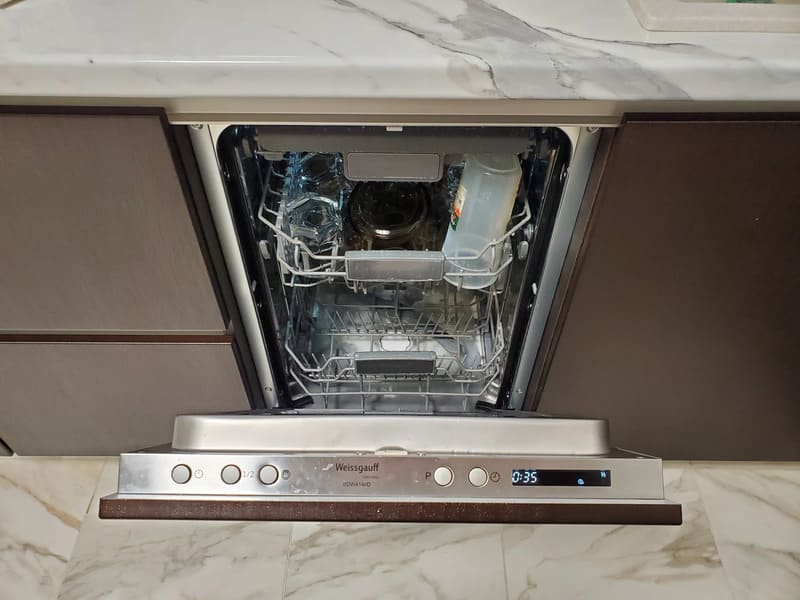 Le corps et le tuyau du lave-vaisselle sont étanches. Il est possible d'utiliser des compositions détergentes trois en un ou l'association classique du produit de rinçage, de la lessive et du sel.