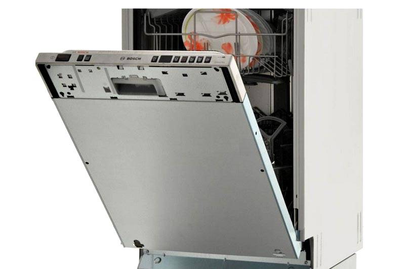 Appareils partiellement intégrés - une combinaison de praticité et de fonctionnalité. Il est installé dans l'armoire de cuisine et économise de l'espace libre. Sur le plan fonctionnel, ces lave-vaisselle ne diffèrent pas des appareils entièrement intégrés. La seule différence est que le panneau de commande n'est pas caché, mais placé sur la partie avant ou à l'intérieur de la porte.