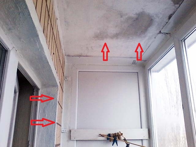 L'apparition d'une forte condensation sur murs, peut-être en raison de violations technologiques. Par exemple, si, lors de l'isolation d'un balcon, les joints sont scellés avec du mastic de gypse au lieu de monter de la mousse, à ces endroits, précisément à cause du gypse, l'humidité s'accumulera, par temps froid, cela entraînera le gel des murs. La seule issue dans cette situation est des réparations urgentes.