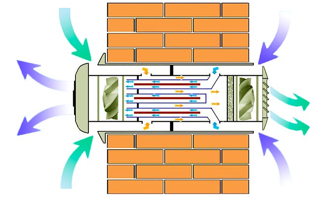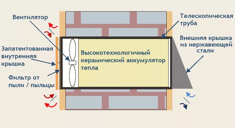 - Hottes de soufflage et d'extraction. Ces appareils sont de petite taille et peuvent être installés non seulement dans le mur, mais également dans le cadre de la fenêtre. Leur avantage est un échange d'air de haute qualité sans pénétration de poussière et de saleté dans la pièce.