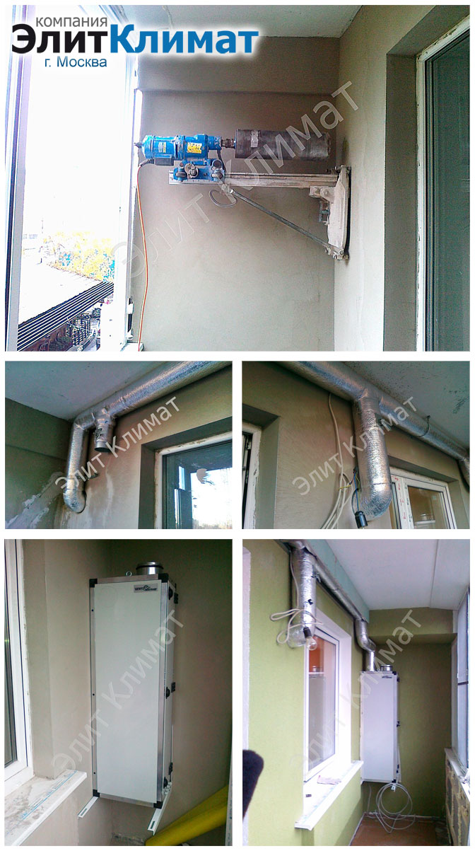 Plus les supporters. Selon le type d'appareils, il peut être nécessaire d'acheminer le câblage jusqu'au site d'installation. Un perforateur ou une perceuse (selon le matériau du mur du balcon) fait les trous nécessaires - pour la hotte en haut, pour la rétraction en bas. Ensuite, les ventilateurs sont fixés avec du mastic dans les ouvertures réalisées. Il ne reste plus qu'à alimenter les appareils.