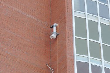 Après avoir créé un trou dans le mur du balcon, en fonction du diamètre du tuyau, le nid est installé dans le mur et fixé avec de la mousse de montage. Après séchage, l'excédent de mousse est coupé, le diffuseur est mis en place. Vous devez vous assurer que l'appareil est monté jusqu'au bout avec le loquet complètement fixé.