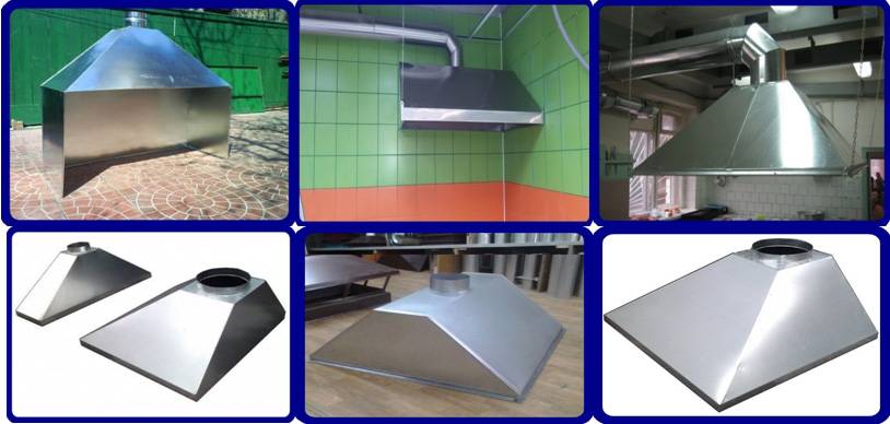 De plus, l'installation de parapluies est effectuée sur toutes sortes d'appareils d'équipement thermique, en particulier, cela s'applique aux friteuses, aux cuisinières à gaz et aux fours. Si le calcul vous permet d'installer de tels parapluies, ils sont également utilisés dans divers locaux industriels - alimentaires, pharmacologiques, physiques, chimiques.