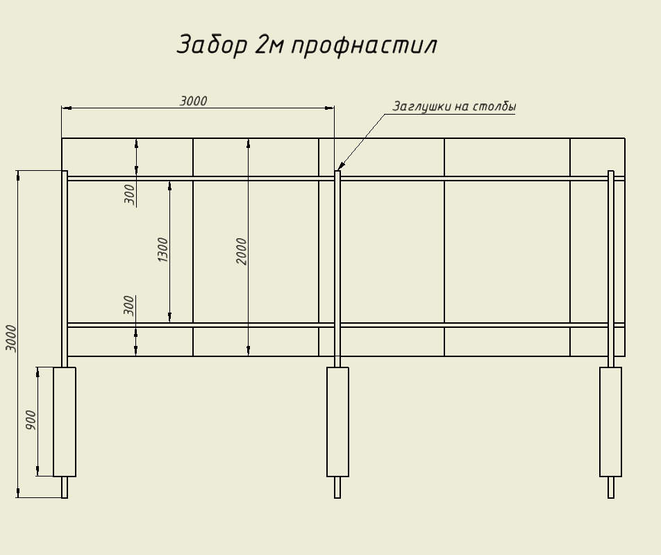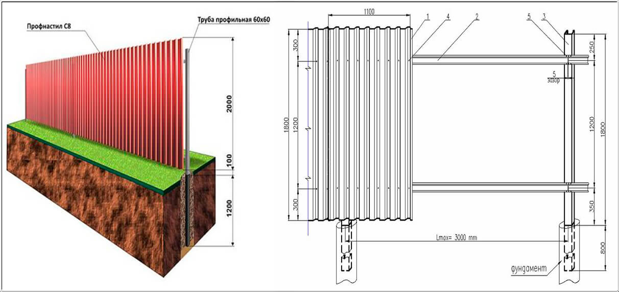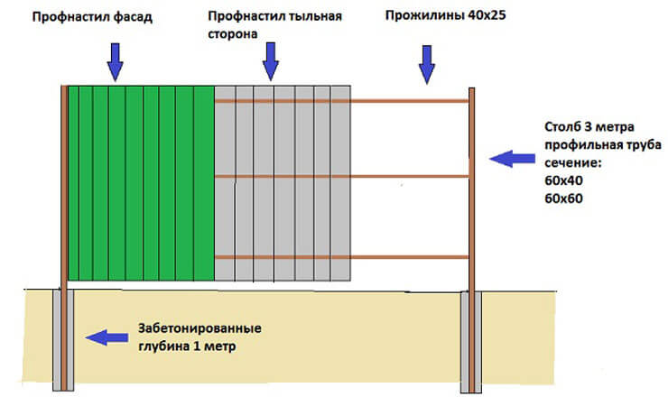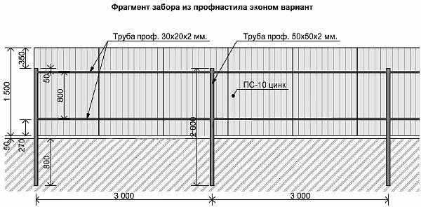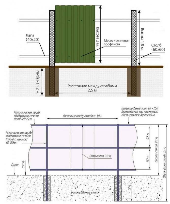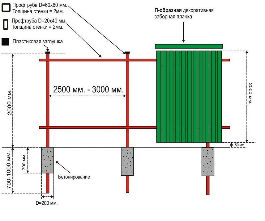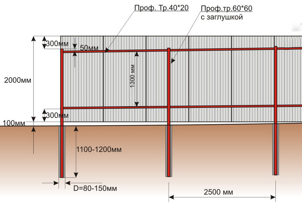Maintenant le nombre de colonnes. Ici, vous avez besoin d'un schéma du site et de la valeur de son périmètre. La meilleure option est lorsque les poteaux de la clôture de la feuille profilée seront situés à une distance de 2 à 2,5 mètres les uns des autres.