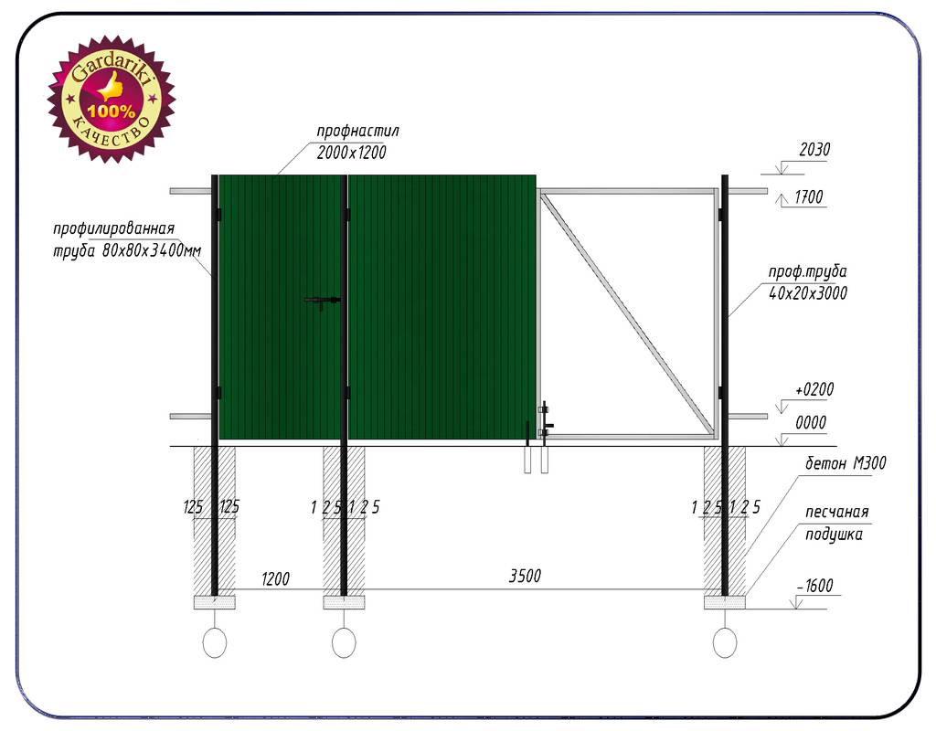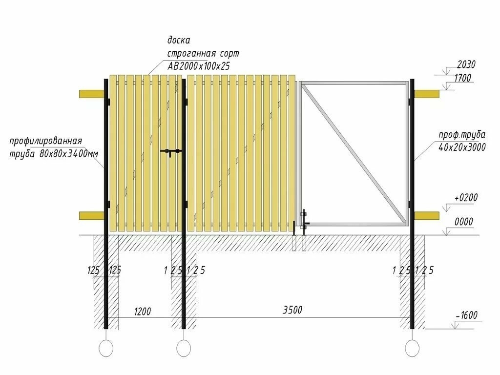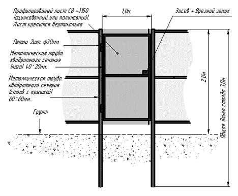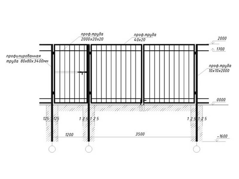 La production la plus simple est une clôture avec des poteaux métalliques creusés dans le sol. Vous pouvez utiliser des tuyaux ronds ou carrés, mais il est plus pratique de travailler avec des tuyaux profilés carrés.