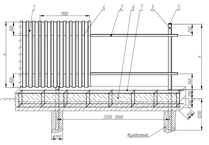 Les éléments de support sur les clôtures ondulées sont installés par plusieurs méthodes, la plus optimale pour les sols non problématiques est la conduite, et sur les sols soulevés, il est préférable de construire une fondation à pilier en bande avec renfort.