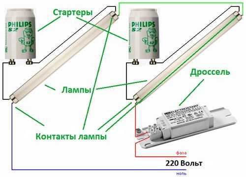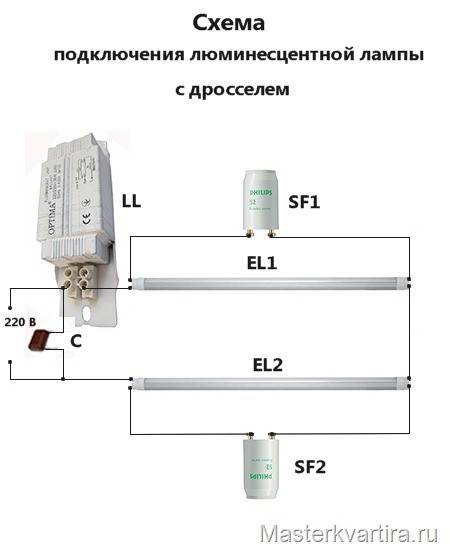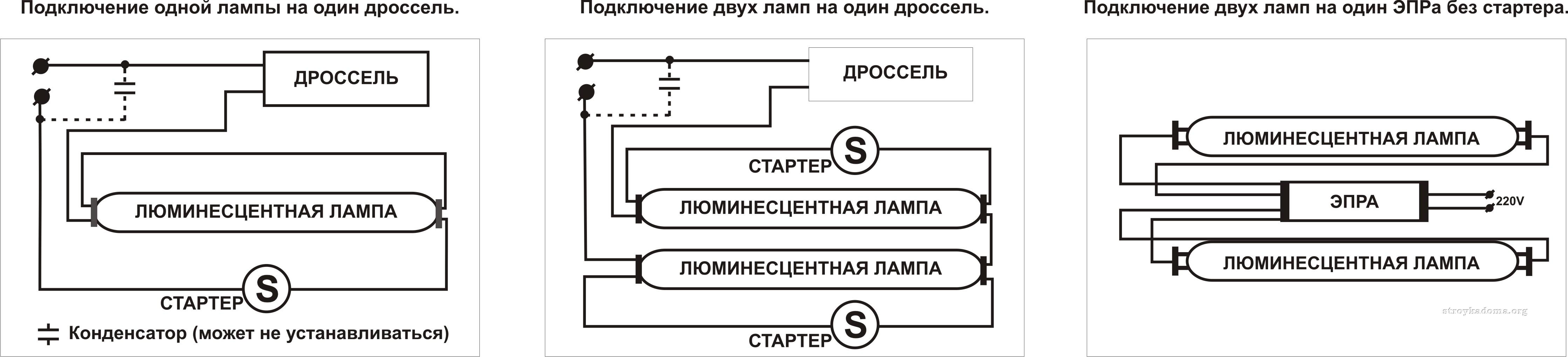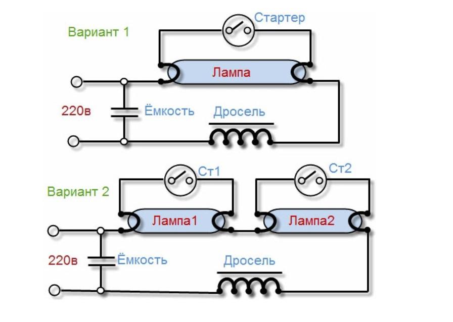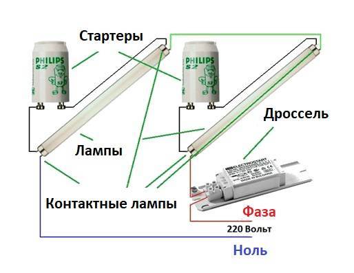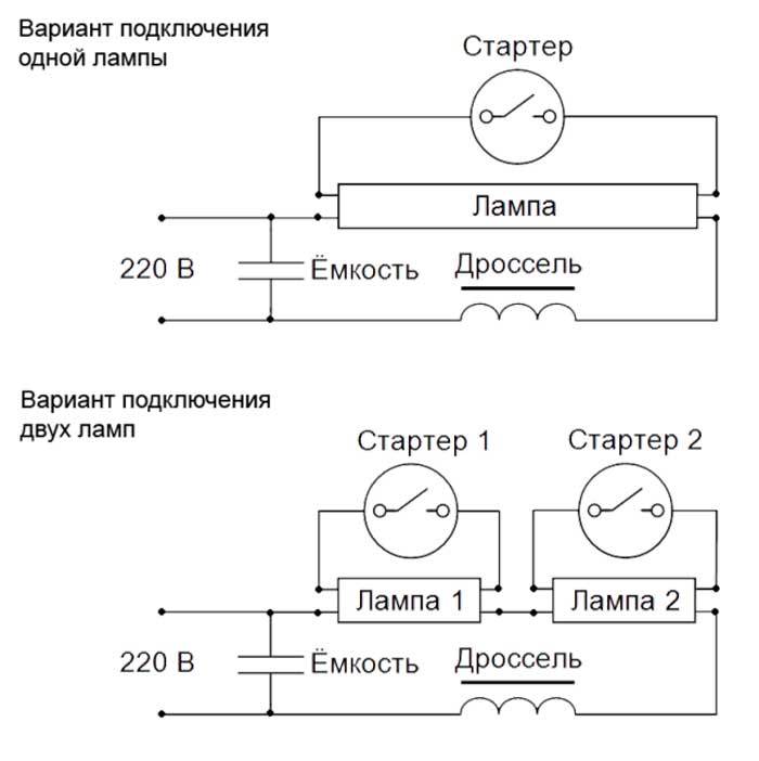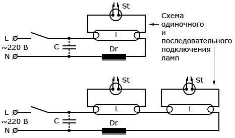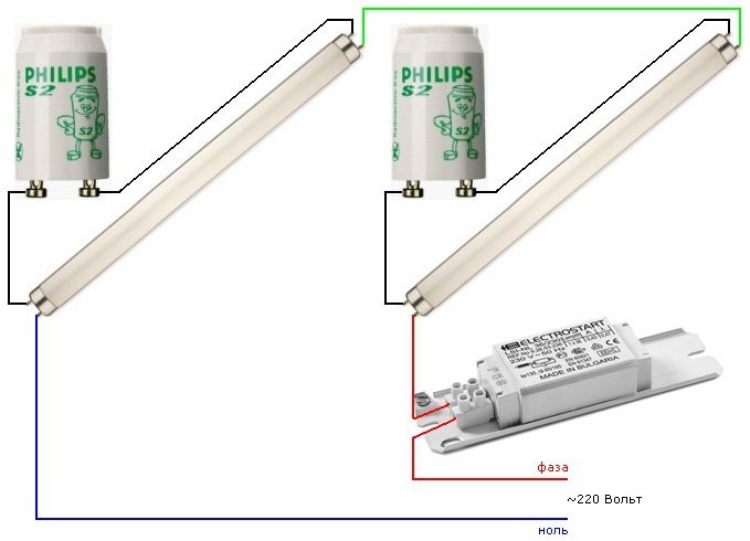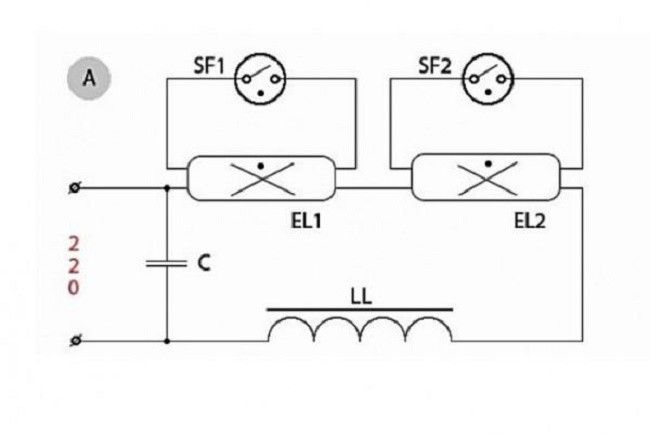 Connecter une lampe fluorescente est un processus très simple, son circuit est conçu pour allumer une seule lampe. Pour connecter une paire de lampes fluorescentes, vous devez modifier légèrement le circuit, tout en agissant sur le même principe de connexion des éléments en série.