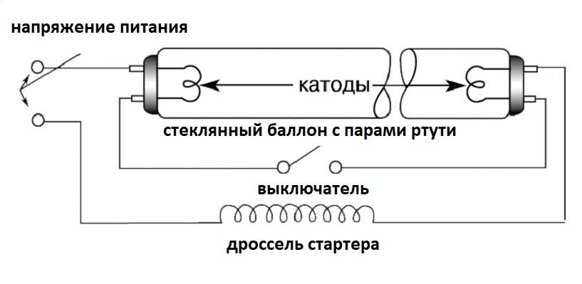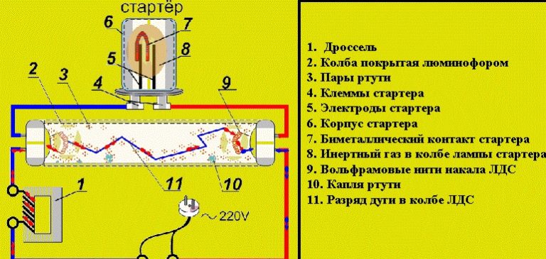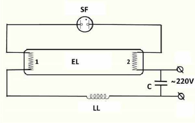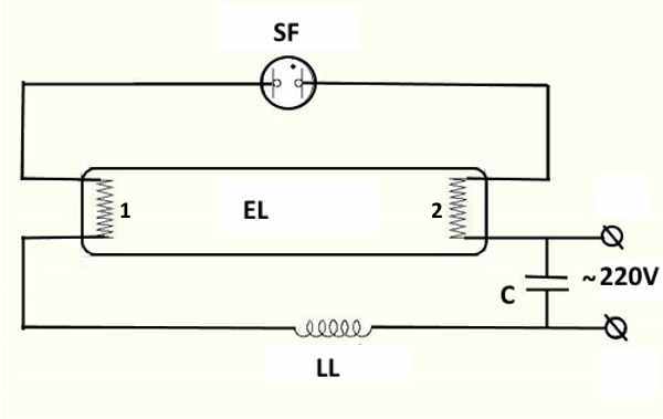 Ainsi, la lampe fluorescente est allumée après avoir réchauffé ses électrodes. Pour ce faire, ils sont exposés à une impulsion haute tension, et alors seulement intervient la tension de fonctionnement dont la valeur doit être suffisante pour entretenir la décharge.