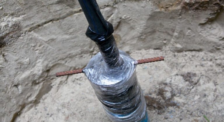 Cette méthode de scellement du tuyau, comme sur la photo, est moins chère, mais son efficacité est douteuse