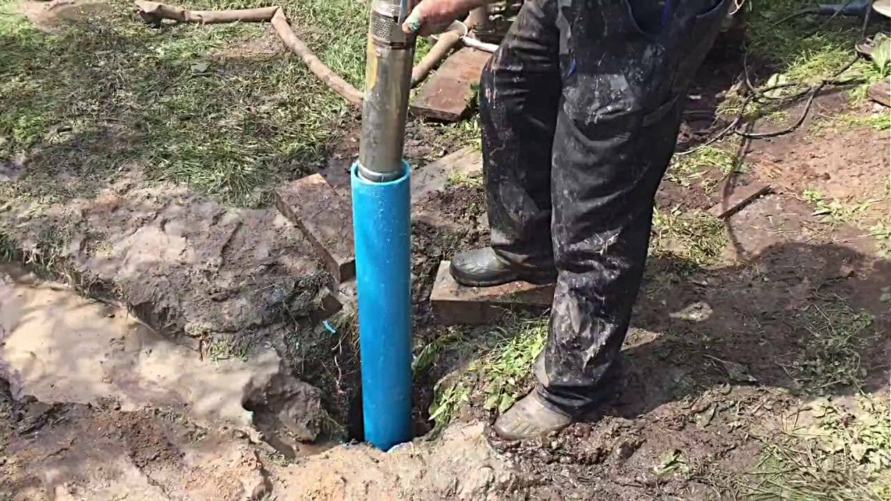 Étape 11. La pompe est abaissée avec un câble d'alimentation, un tuyau et un câble profondément dans le puits. Pour ce travail, des assistants seront nécessaires, car il nécessite l'application d'une force physique considérable.