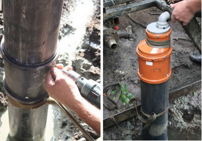 Pour ce faire, il est soigneusement abaissé dans le tube de tubage jusqu'au trou percé afin que le tuyau de dérivation avec une connexion filetée sorte finalement. Ensuite, un joint en caoutchouc et une bague de serrage sont installés de l'extérieur.