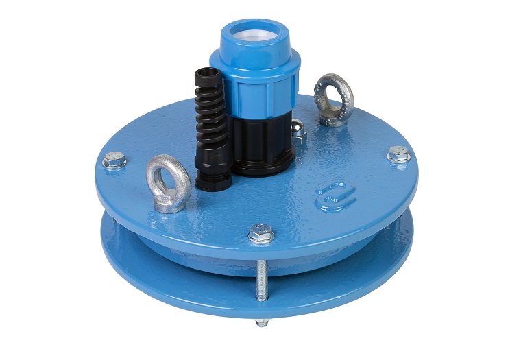 Les deux boulons à œil sur la surface de ce capuchon agissent comme un dispositif pour soulever le couvercle. Parfois, un équipement de levage spécial est même utilisé à cet effet, car le poids d'une pompe submersible puissante peut dépasser 200 kg.