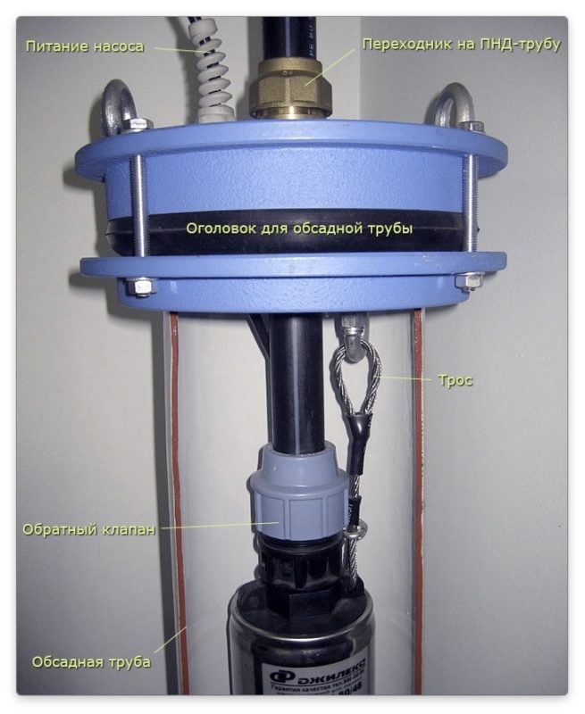- Amélioration de la fiabilité des équipements de fixation. En installant la tête sur le puits, nous avons la possibilité de fixer la pompe sur un câble attaché au boulon à œil dans le couvercle de l'appareil. Un tel support sera beaucoup plus durable que la fixation de la pompe avec des moyens improvisés.