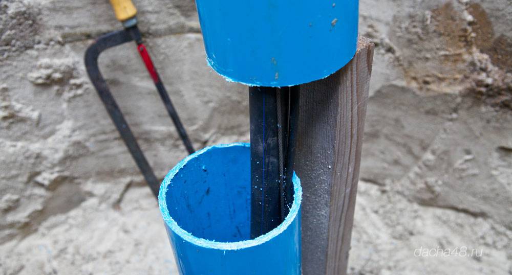 Étape 13. Le tube de montage est vissé à la connexion filetée supérieure située à l'intérieur de l'adaptateur. De plus, à l'aide d'un tuyau, la pièce est insérée dans le puits et reliée à la partie extérieure (la connexion en queue d'aronde mentionnée ci-dessus est utilisée). Ensuite, le tuyau est dévissé et retiré.