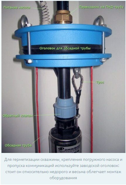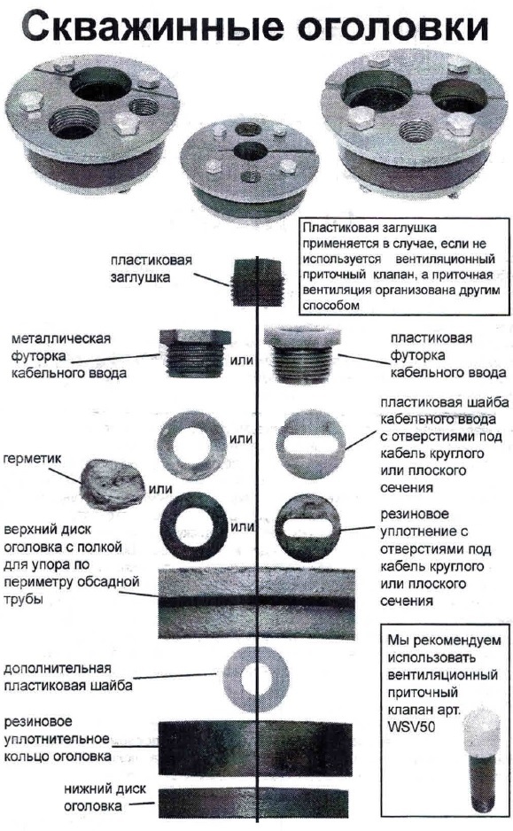 L'un des détails les plus importants qui affectent les performances de l'ensemble du système est la tête du puits. Il s'agit d'un couvercle étanche solide, qui est fixé sur la coupe supérieure du tube de tubage.