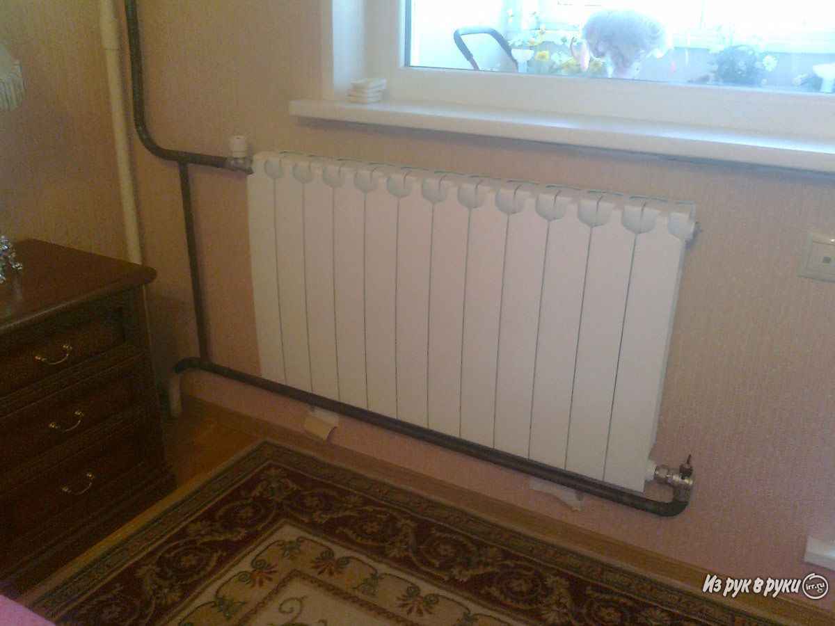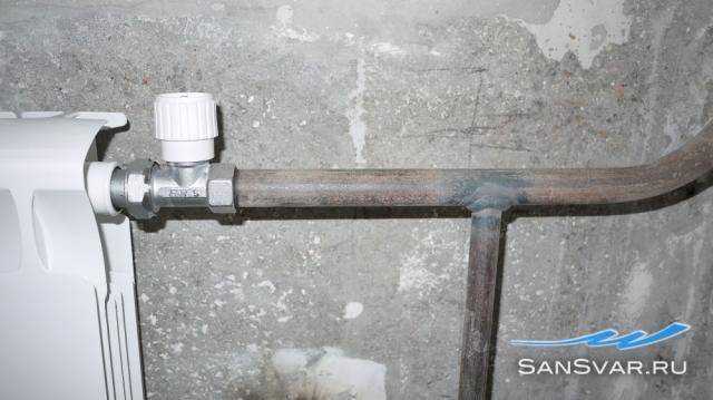L'avantage le plus important du remplacement des batteries pendant la saison de chauffage est que vous pouvez immédiatement vérifier la qualité des soudures et des raccords filetés immédiatement après la fin des travaux (dans notre cas, le robinet est vissé au tuyau et au radiateur, et tout le reste est soudé). Il n'est pas nécessaire d'attendre l'arrivée d'eau à l'automne pour s'assurer que les batteries chauffent bien et que l'installation se fait vraiment bien.