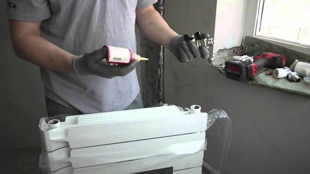 Pour assembler la batterie, vous devez sceller les écrous, traiter avec de la pâte et visser sur les tuyaux aux jonctions. L'aménagement du radiateur est complété par l'installation de grues.