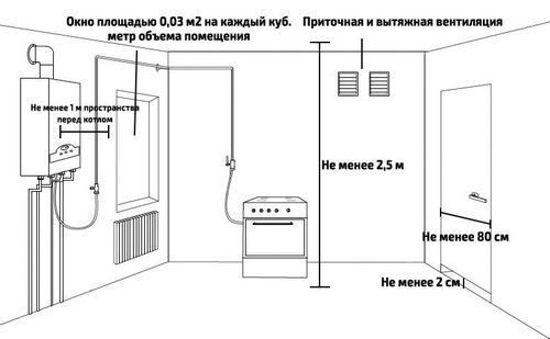 - Exigences pour une pièce pour l'installation d'une chaudière à gaz dans une maison privée