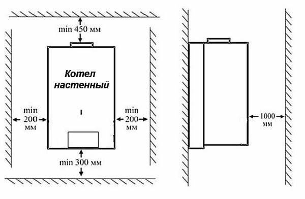 - le volume minimum de la pièce est d'au moins 15 m3 + 0,2 m3 pour chaque 1 kW de puissance de la chaudière (par exemple, lors de l'installation d'une chaudière d'une capacité de 24 kW, le volume de la pièce est de 15 + 0,2 * 24 = 19,8 m3 );